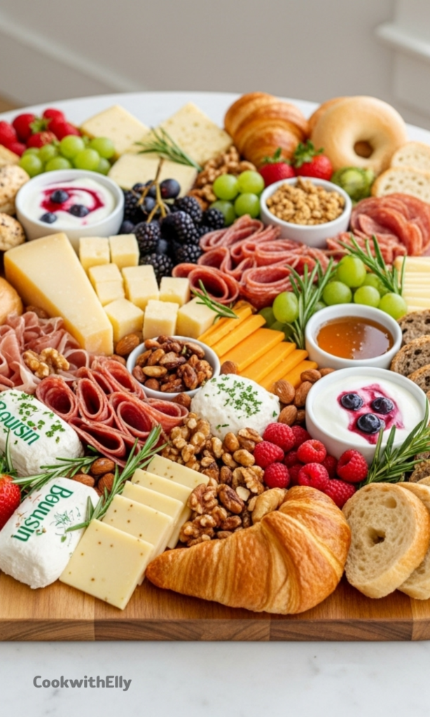 You can even lean sweet and turn this into a dessert-style brunch board. Extra pastries, chocolate, and jam work beautifully.