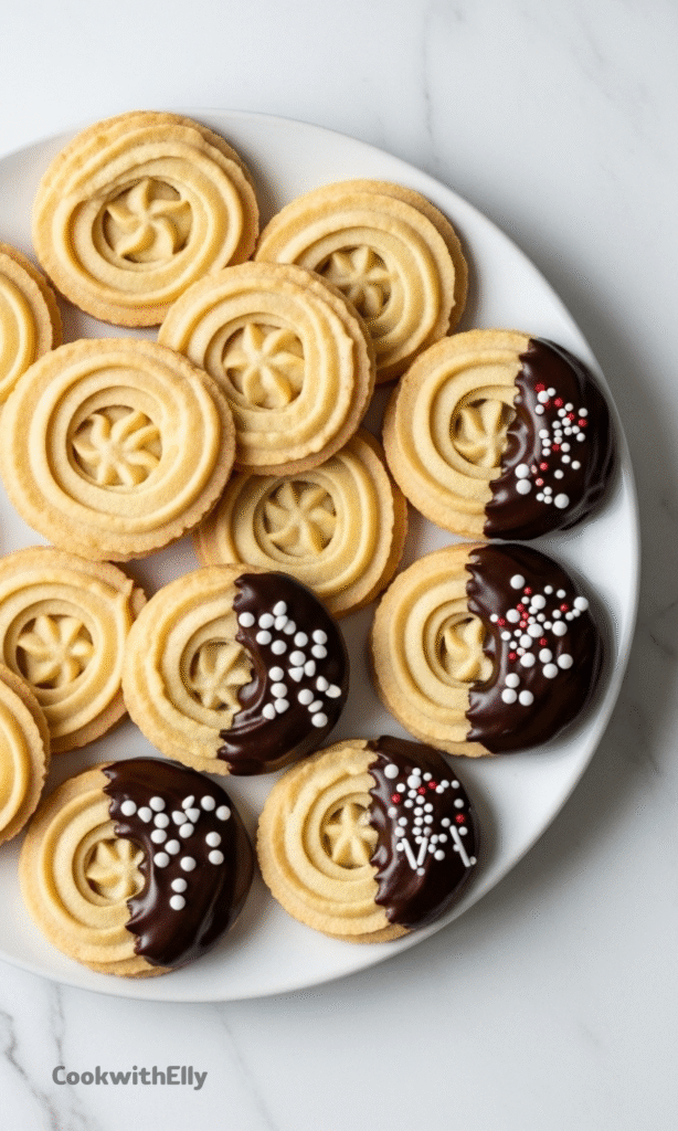 When stored in an airtight container at room temperature, these butter cookies stay fresh for 2–3 weeks. If dipped in chocolate, they still last just as long.