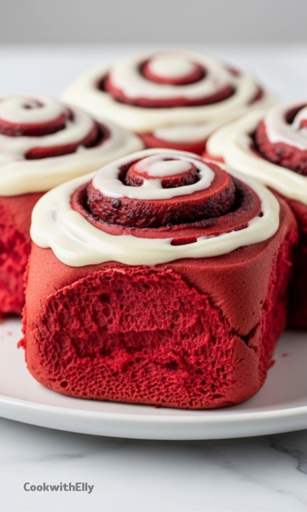 Red velvet cinnamon rolls with cream cheese frosting sit right at the intersection of cozy and celebratory. They feel special without being fussy, indulgent without tipping into over-the-top territory.